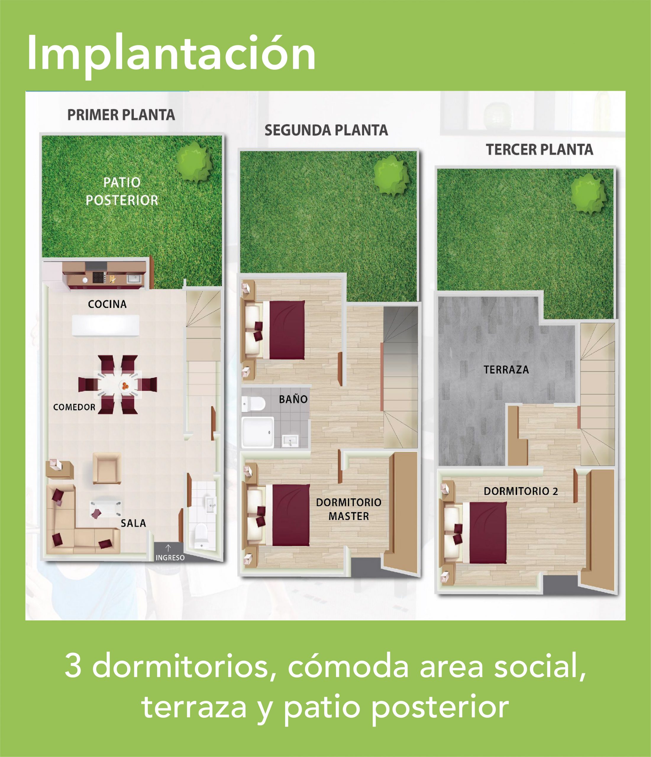 Casas de 3 dormitorios con posibilidad de ampliación a un 4to dormitorio.